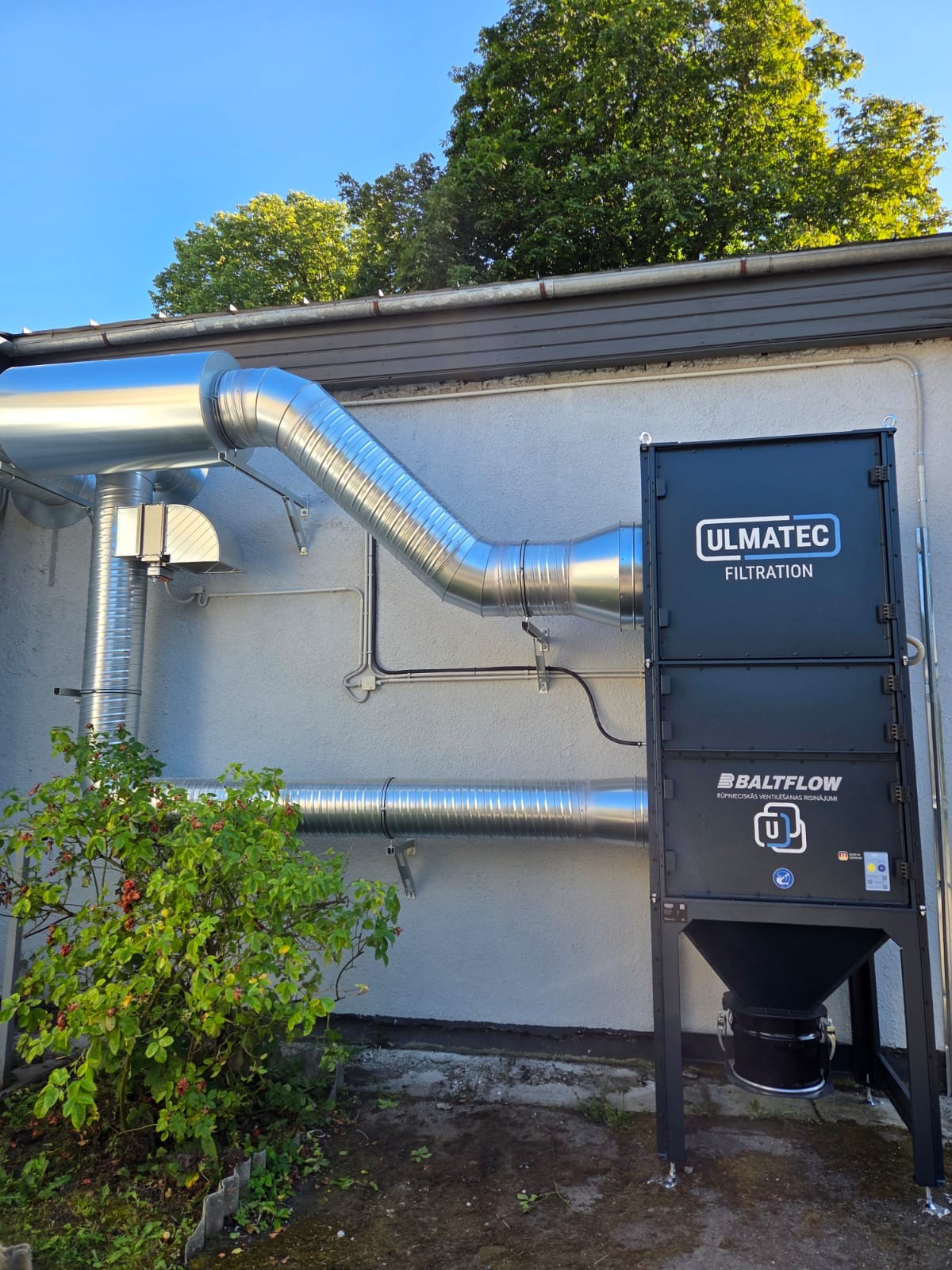 Projekta apjoms: 14 metināšanas posteņi, gaisa plūsma 15 000 m3/st, uzstādītā jauda 15 kW