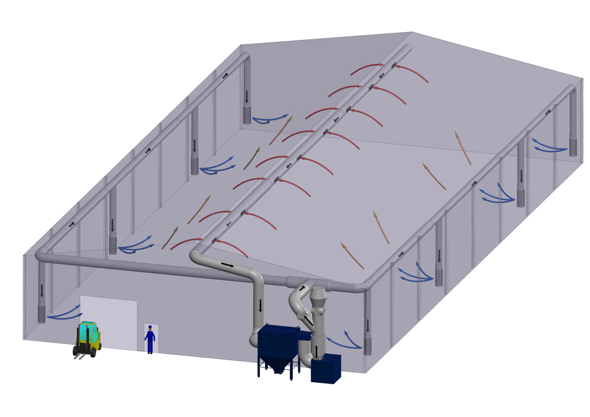 The individual design extraction systems provide air circulation, support of heat regulation and as extension a heating system, cooling system and fresh air supply system can be offered.